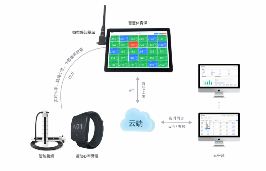 智能心率手环可以实时监测学生的心率和运动情况,帮助老师更好地指导学生的运动方式和强度,同时还能有效地识别和预警心率过高的情况,避免学生的运动风险。50米短跑测试仪可以记录学生的跑步成绩,并将数据瞬间同步到教师平板上,方便老师们查看和分析成绩。智能跳绳则可以自动记录学生的跳绳次数和时间,帮助学生更好地掌握跳绳技巧和提高运动效果。
